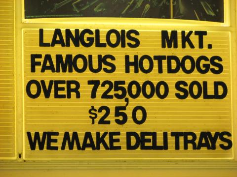 After the expansion of the Langlois Market in " 1981", the need for a deli was a must due to the Tucker saw mill gang. * The mill employed quite a few workers all looking for something to eat at their morning and afternoon breaks . Truckers going up and down 101 seemed to be hungry as well As we pondered on what to sell, my mother-in-law Muriel Sweet suggested our selling hot dogs using her famous mustard recipe. She knew people enjoyed her mustard from all the compliments she received every time served it at picnics.